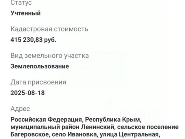 Участок 7 соток в собственности в селе Ивановка, расстояние до Керчи 13 км,до трассы Таврида 1,3 км,до городского пляжа Керчи 20 км.Коммуникации свет и вода находятся по границе участка, документы РФ. Кадастровый номер 90:07:030201:922 Адрес участка село Ивановка ул. Центральная . Удобное расположение участка от трассы Керчь-Симферополь(Таврида), расстояние до Крымского моста 16 км. В наличии несколько участков которые находятся рядом друг с другом в центре посёлка .Для более подробной информации в личных сообщениях.