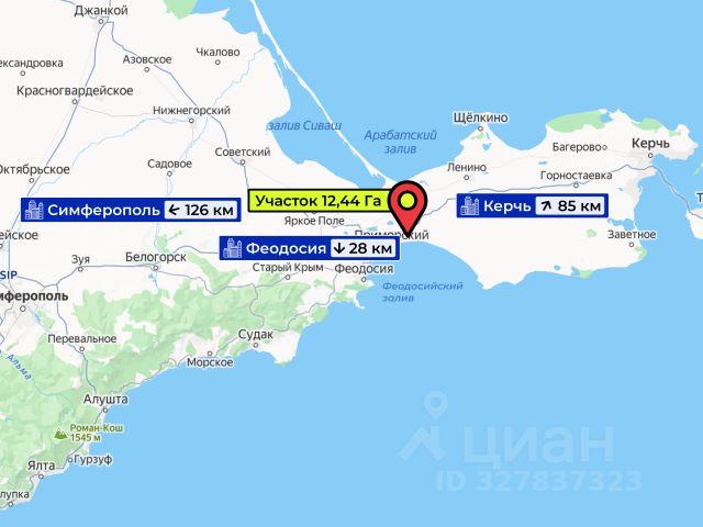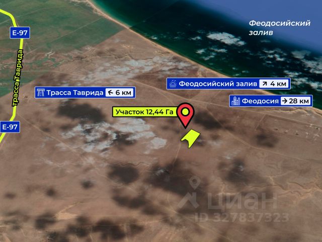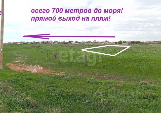 Участок площадью 1 гектар расположен в 1,5 км от моря, вблизи озера Генеральское, вокруг которого активно развиваются коттеджные поселки. Территория обладает выгодным расположением: подъездные пути обеспечены со стороны поселков Приморский и Южное, известных своими песчаными пляжами. Расстояние до ближайшего пляжа составляет 1,5 км, что делает участок привлекательным для тех, кто ценит близость к морю без непосредственной курортной суеты. До центра поселка Приморский — 10 км, села Береговое — 13 км, Феодосии — 20 км, трассы "Таврида" — 6 км, что обеспечивает удобную транспортную доступность. В 5 км от участка ведется строительство нового микрорайона многоэтажных домов — ЖК "Просторы Крыма", что указывает на перспективность района и потенциальный рост инфраструктуры.