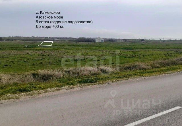 Продаётся земельный участок в СНТ Мрия у побережья Азовского моря у живописной бухты Космонавтов! Земельный участок площадью 6 соток имеет ровную прямоугольную форму, строений и насаждений нет, что обеспечивает свободное планирование и размещение своего загородного дома мечты, который идеально подойдет для жизни и отдыха! Коммуникации - свет и вода (централизованная) проходят вдоль участка. Преимущества: Участок в собственности - никаких юридических проблем! Уникальное место для отдыха и строительства вашего загородного дома. Чистый воздух, природа и близость к морю (менее 1 км.) - идеальные условия для жизни и отдыха. Удобный подъезд, развитая инфраструктура доступна в 10 минутах езды. Что рядом: Прекрасные пляжи Азовского моря - идеальное место для купания и рыбалки, проведения фотосессий Уникальная природа и живописные пейзажи, которые вдохновят вас на новые свершения Тихое и спокойное место для семейного отдыха и уединения. Цена: 1 100 000 руб. Не упустите свой шанс стать обладателем этого замечательного участка! Звоните прямо сейчас, чтобы узнать подробности и организовать просмотр. С собственником заключен Эксклюзивный договор. Номер объекта: #1/536975/23842