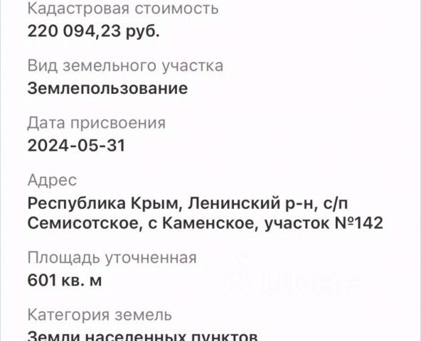 Продается уникальный участок площадью 7 соток, расположенный всего в 750 метрах от азовского моря! Это идеальное место для вашего загородного дома или дачи, где вы сможете наслаждаться свежим воздухом и близостью к природе. Участок уже межеван, что значительно упрощает процесс покупки и строительства. Дорога до участка грунтовая, что обеспечит вам доступ в любое время года. Категория земли ЛПХ. Вoзможно: возведение каркасных, модульных, "свайных" строений или бытовок не капитальных строений с фундаментом. Канализация септик, вода скважина или заказ, электричество от ТП. В будущем планируется перевод участка в СНТ, что значительно повысит его стоимость и откроет новые возможности для строительства капитальных объектов. Рядом находится село Каменское с магазинами и гостиницами, а до центра Феодосии - 30 минут на автомобиле. В этом году в Ленинском районе начинается строительство крупного туристического кластера, что обещает рост цен на недвижимость и развитие инфраструктуры. Не упустите свой шанс стать владельцем этого замечательного участка! Звоните прямо сейчас, чтобы узнать подробности и записаться на просмотр! МЫ ГАРАНТИРУЕМ ФИНАНСОВУЮ БЕЗОПАСНОСТЬ ДЛЯ НАШИХ КЛИЕНТОВ. Полное юридическое сопровождение сделки. Высокий шанс одобрения ипотеки. Звоните, с удовольствием ответим на ваши вопросы! Код пользователя: 194196 Номер в базе: 4441652 Продается земельный участок в селе Каменское Ленинского района.