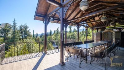 Участок 55 соток представляет собой ботанический сад, где произрастает порядка 200 уникальных растений. В этом природном ансамбле искусно вплетены малые архитектурные формы, придающие ему неповторимый характер. изысканные беседки, облицованные белым мрамором, природным камнем, медью, коваными элементами и массивом дуба, создают уединенные уголки для отдыха и наслаждения природой.