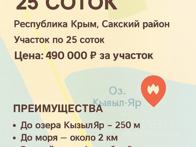 При звонке сообщите, пожалуйста, номер объекта 1649, чтобы мы могли предоставить вам интересующую информацию оперативно. Продам земельный участок на улице Ясная в городе Саки.
