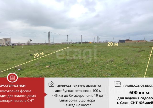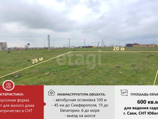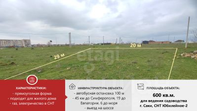 Продам земельный участок, ровный, просторный, правильной формы, размеры: 30 м х 50 м. Участок площадью 15 соток расположен в первой линии от асфальтированной дороги. Отличное месторасположение как для проживания так и для размещения бизнеса. Поселок расположен в перспективном месте - в 4 км находится развязка новой трассы Симферополь - Евпатория, что сократит дорогу к морю и до Симферополя. Все необходимые коммуникации проходят у границы участка (газ, вода), электричество 150 метров от участка. Инфраструктура поселка развита: школа, детский сад, продуктовые магазины, аптека, амбулатория, автобусная остановка в пешей доступности, регулярное автобусное сообщение. До г.Саки 20 минут, до моря 25 минут на авто. Наша комиссия 79000 р.+1% от стоимости объекта, но не менее 70000 р. МЫ ГАРАНТИРУЕМ ФИНАНСОВУЮ БЕЗОПАСНОСТЬ ДЛЯ НАШИХ КЛИЕНТОВ. Полное юридическое сопровождение сделки. Высокий шанс одобрения ипотеки. Звоните, с удовольствием ответим на ваши вопросы! Код пользователя: 113474 Номер в базе: 3578407