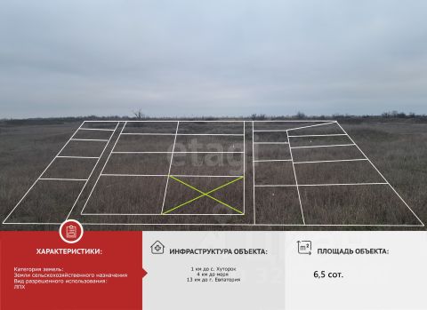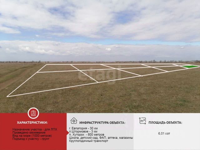 Номер объекта: 543055. При звонке назовите номер объекта Продается земельный участок в Крыму, с. Штормовое, 300 метров до пляжа! Вид разрешенного использования: ведение личного подсобного хозяйства, участок находится в пределах населённого пункта, а это значит, что на нём можно строить жилой дом и хозяйственные постройки, не выше трёх этажей и не более 20 метров в высоту, предназначенные для постоянного проживания и удовлетворения бытовых нужд. Рядом с участком проходит электричество, хорошие подъездные пути. Пляжи в Штормовом — одни из самых широких в Крыму, (в некоторых местах превышает 100 м), покрыты мелким золотистым песком. Заход в воду очень пологий, дно песчаное, без крупных камней. Штормовое — зона солончаков. Недалеко от берега, буквально в 50 метрах от пляжа находится множество мелких и крупных соленых озер, где гнездятся редкие птицы. Дно озер устлано целебной грязью. Солончаки выглядят очень живописно, поэтому отлично подойдут для атмосферных фотосессий.