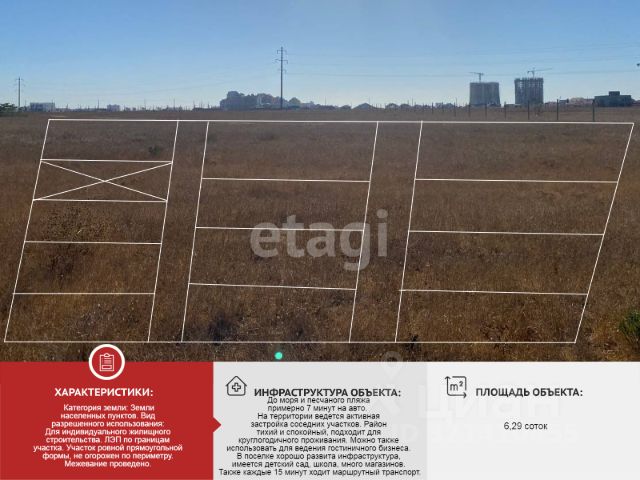 Перспективы : 1. В 2029-2030гг. Будет произведена застройка соседних территорий круглогодичными курортами международного значения "Золотые пески" и "Крымская Ривьера", что повлечет увеличение стоимости данного земельного участка.