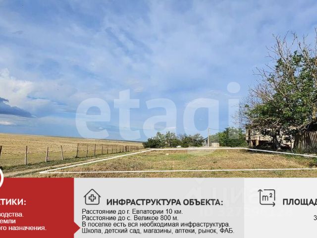 Продается земельный участок площадью 10 соток в СНТ Оазис (пригород Евпатории), Суворовское сельское поселение, Сакского района. Категория земли - Земли сельскохозяйственного назначения. Вид разрешённого использования -Ведение садоводства. Документы РФ. Право собственности. Межевание проведено. Коммуникации электричество (установлен счётчик), вода своя скважина (+ поливная от кооператива), канализация выгребная яма. Участок угловой, не огорожен забором. На участке есть не капитальное строение хоз. назначения с подвалом, и не дострой. В этом районе многие жители кооператива проживают круглогодично. Есть возможность прописки. Участок расположен в 11км от города Евпатория (10-15мин. на машине), регулярные рейсовые автобусы каждые 15-20 минут. Расстояние до моря 14 км. Цена 1 350 000 руб.