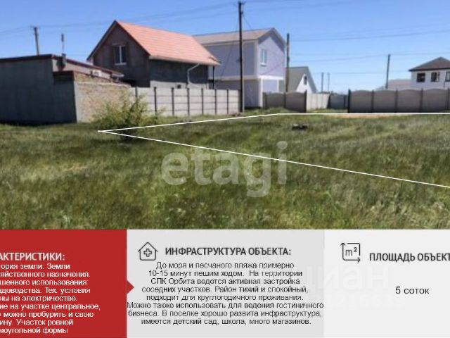 Участок в шаговой доступности к морю. Для жизни и гостиничного бизнеса. Идеальное место рядом с лучшими пляжами в Евпатории. Шикарнейший ровный участок пока ЛПХ (соседние с обеих сторон-ИЖС) с коммуникациями, собственным выходом к пруду. 15 соток земли в 700 метрах от лучшего пляжа СуперАква Между Евпаторией и Заозерным! Локация данного участка идеальна для жизни, отдыха, бизнеса! В непосредственном соседстве лечебное грязевое озеро, прогулочные зоны, действующие санатории с лечебной базой, огромный центр спорта с секциями, тренажерными залами и бассейнами, с полностью доступной средой. Кроме этого, здесь очень перспективное место. Рядом создается мощная инфраструктурная база строящимися жилыми комплексами. Это набережная и парк вокруг озера "Мойнаки", стадионы, детские и воркаут площадки, большой торгово-развлекательный центр, детский сад - сдача 2026 год, школа 21 века - 2027 год. До лучших песчаных пляжей 5 минут пешей прогулки, до остановки общественного транспорта и ближайшего магазина - 2 мин. Торг реальному покупателю Недвижимость в этом месте стабильно растет в цене, обеспечивая своим владельцам постоянную круглогодичную прибыль, и подтверждая максимальную ликвидность сделанных инвестиций! Показ в любое удобное время!!! Не упустите шанс самого выгодного вложения в недвижимость на берегу моря!!!