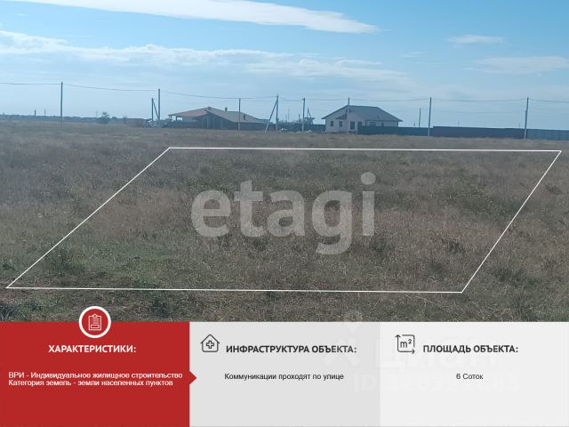 Продается участок 6 соток в КПЛазурный на окраине населенного пункта Уютное.До Евпатории около 3 километров.Активно застраивающийся поселок. Вода и электричество по границе участка. Канализации нет.В поселке есть современный детский садик,школа ,церковь,несколько магазинов,аптек, Ледовый дворец Ильи Авербуха.До берега моря пляжа Рябинка на автомобиле или велосипеде 3 километра. Номер объекта: #1/549636/23345
