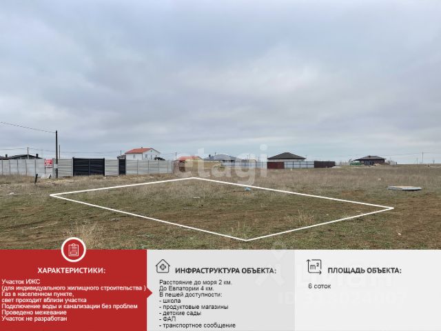 Продается земельный участок, площадью 7,52 соток в современном поселке Уютное. Категория земельного участка : личное подсобное хозяйство, категория - земли населенных пуктов. Линия электропередач возле участка. По границе земельного участка проходит центральное водоснабжение. Рядом уже построены новые дома. В границе села есть вся необходимая инфраструктура, такая как: детские сады, школа, детские развлекательные центры. Магазины, аптеки, ФАП, парки и рынок находится в пешей доступности. Транспортное сообщение круглогодичное. До центральной площади города Евпатория 15 минут на авто по асфальтированной дороге. Документы российского образца. Рассмотрим любые виды оплаты. Звоните, пишите! Буду рада ответить на Ваши вопросы и провести показ. МЫ ГАРАНТИРУЕМ ФИНАНСОВУЮ БЕЗОПАСНОСТЬ ДЛЯ НАШИХ КЛИЕНТОВ. Полное юридическое сопровождение сделки. Высокий шанс одобрения ипотеки. Звоните, с удовольствием ответим на ваши вопросы! Код пользователя: 173604 Номер в базе: 7645636