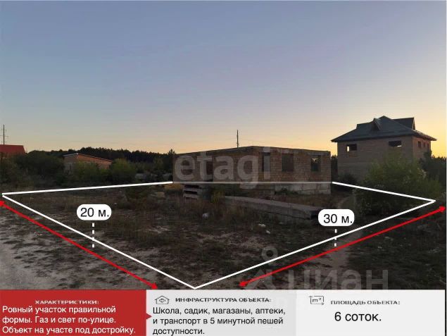 Продается участок - 6 соток, ИЖС ! Идеальное место для жизни и отдыха! Отличная возможность приобрести участок в черте города, но с ощущением загородного уединения! Площадь: 6 соток, ИЖС — можно построить дом, прописаться и жить круглый год. Свет и газ — по границе, подключение без проблем. Локация: Вся инфраструктура — в пешей доступности: детский сад и школа в 10 минутах ходьбы магазины, аптеки, поликлиника остановка общественного транспорта — всего 500 метров от участка Преимущества: Рядом лес, чистый воздух, тишина и природное спокойствие Удобный подъезд Участок ровный, правильной формы Уже частично начато строительство — сэкономите время и деньги Идеальный вариант: Для семьи с детьми: все рядом, тихо и безопасно Для тех, кто хочет жить на свежем воздухе, но с городскими удобствами Для инвестиции: стройтесь и продавайте дороже Звоните, чтобы узнать подробности и записаться на просмотр! Такие предложения быстро уходят с рынка. Номер объекта: 9932435 МЫ ГАРАНТИРУЕМ ФИНАНСОВУЮ БЕЗОПАСНОСТЬ ДЛЯ НАШИХ КЛИЕНТОВ. Полное юридическое сопровождение сделки. Высокий шанс одобрения ипотеки. Звоните, с удовольствием ответим на ваши вопросы! Код пользователя: 189771 Номер в базе: 9932435