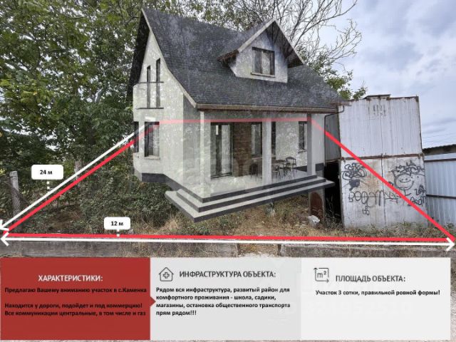 Продается земельный участок с небольшим домиком, в Киевском районе, мкр. Каменка, 1-2 ост., г. Симферополь. Хорошее месторасположение, рядом главная дорога, магазины, остановка. Участок 3 сотки, документы РФ. Свет есть, воду нужно пробивать скважину. Газ провели по границе участка.