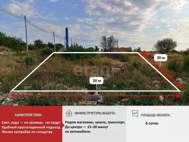 Продается уникальный участок в перспективном районе Петровские Высоты по привлекательной цене! Площадь 6 соток, категория ИЖС это идеальное место для строительства вашего дома мечты или выгодного инвестиционного проекта. Участок находится всего в 3 км от центра Симферополя и с другой стороны близость к водохранилищу и лесу что делает его отличным выбором для тех, кто ценит комфорт городской жизни и близость к природе. Разработан ГЛОБАЛЬНЫЙ ПЛАН развития территории Петровских Высот, который включает в себя строительство школы, детского сада, стадиона и благоустроенных общественных пространств. Асфальтированные дороги и смотровые площадки сделают этот район еще более привлекательным для жизни и отдыха. Соседние участки уже активно застраиваются, что свидетельствует о растущем интересе к этому месту. Дорога к участку грунтовая, всего 100 метров до асфальта, что обеспечивает удобный доступ. Не упустите возможность стать владельцем этого замечательного участка! Это отличное решение как для строительства собственного дома, так и для долгосрочных инвестиций. Звоните прямо сейчас, чтобы узнать больше и записаться на просмотр! Номер объекта: 8947370 МЫ ГАРАНТИРУЕМ ФИНАНСОВУЮ БЕЗОПАСНОСТЬ ДЛЯ НАШИХ КЛИЕНТОВ. Полное юридическое сопровождение сделки. Высокий шанс одобрения ипотеки. Звоните, с удовольствием ответим на ваши вопросы! Код пользователя: 181553 Номер в базе: 8947370