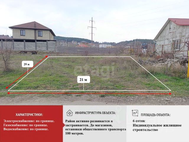 Арт. 127024819 Предлагаем отличный земельный участок для строительства вашего дома в перспективном районе по выгодной для Вас стоимости. Выделенный широкий подъезд к участку. Развитая инфраструктура в пешей доступности: фитнес-клубы, салон красоты, медцентр, ЦРБ, роддом, школа, частный детский садик, кафе, школа танцев и многое др. Коммуникации все центральные: вода, канализация. Газ и свет по границе участка. Остановка общественного транспорта в пяти минутах пешком. Подходит под любую ипотеку, в том числе и семейную. Оказываем юридическое сопровождение сделки. Купить земельный участок на улице Бородина в городе Симферополь.