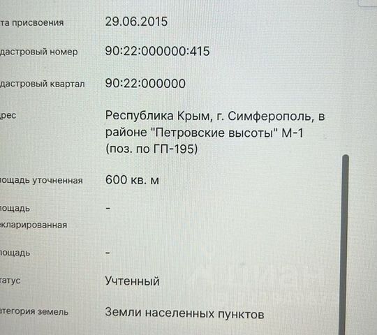 Участок ИЖС 6 соток в городе Симферополь! Расположен в живописном и перспективном квартале Петровские высоты с прекрасными видами на горы и лес! Характеристики земельного участка: - Правильной формы, видовой. - Электричество - по границе. - Вода, газ и канализация подключение в конце 2025 г. в рамках Федеральной программы. Расстояние до центра Симферополя 5 км, до моря (Алушта) 45 км, до моря (Николаевка) 45 км. Дорога грунтовая. До асфальта - 800 метров. Разработан ГЛОБАЛЬНЫЙ ПЛАН развития территории Петровских высот, включающий строительство школы, детского садика, стадиона, благоустроенной территории, асфальтированных дорог и смотровых площадок. Соседи активно застраиваются. Вблизи асфальтированная дорога от улицы Крылова. Прекрасное приобретение как для строительства дома, так и для инвестиций. Отличное расположение в непосредственной близости ко всей необходимой инфраструктуре! Участок можно приобрести в ипотеку. Звоните в любое время, проживаю в этом районе, проконсультирую и проведу показ! Номер объекта: 9197092 МЫ ГАРАНТИРУЕМ ФИНАНСОВУЮ БЕЗОПАСНОСТЬ ДЛЯ НАШИХ КЛИЕНТОВ. Полное юридическое сопровождение сделки. Высокий шанс одобрения ипотеки. Звоните, с удовольствием ответим на ваши вопросы! Код пользователя: 183262 Номер в базе: 9197092