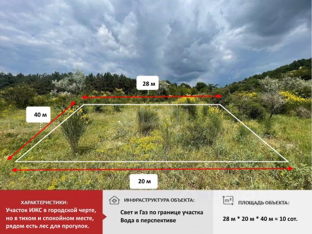 Продажа участка 20 соток (2 участка по 10 соток). Видовой участок: на город и лес. Рядом лес, заповедник, тихое и спокойное место, но без ущерба социума, до центра города 10-15 минут езды. С участка по улице выезд возможен сразу на объездную, что позволяет избегать пробок и добираться до любой части города, так же сразу выезжать на трассу и ехать к морю, или в сторону моста. Место для жизни просто идеальное. Вы в городе, но ощутите все прелести загородного отдыха. Центральные коммуникации: газ через два участка, электричество по границе участка, водоснабжение центральное, канализация локальная (септик). Хорошо развита инфраструктура. В непосредственной близости расположены: самый инстаграмный фитнес центр, одна из лучших пляжных зон в городе, в этом году появился единственный в городе аквапарк, университет, магазины, школа, парк ТНУ, автовокзал. Рядом есть еще участок 10 соток, для тех, кто любит простор.