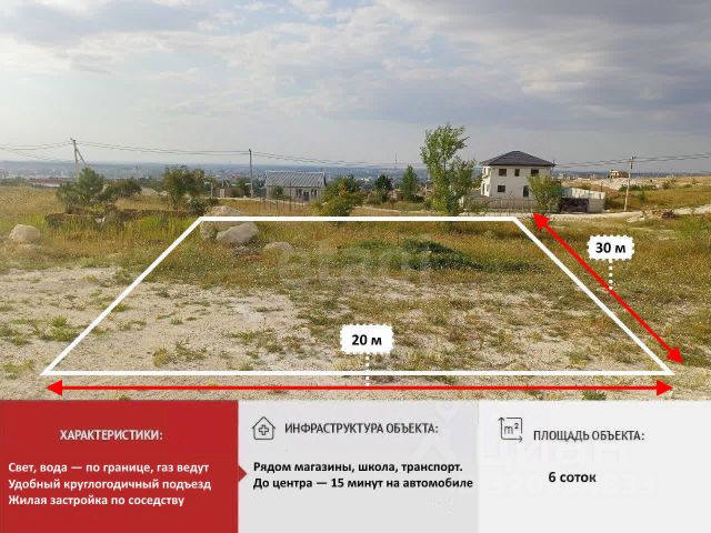 Продается участок 6 соток в перспективном районе Петровские Высоты по привлекательной цене! Продается уникальный участок в быстроразвивающемся районе Петровские Высоты — это ваш шанс воплотить мечту о собственном доме или выгодном инвестиционном проекте! Площадь 6 соток, категория ИЖС, идеально подходит для строительства жилья, где комфорт городской жизни гармонично сочетается с красотой природы. На участке уже ведутся работы по подключению электричества, воды, газа и канализации, завершение планируется в 2025-2026 годах. Это значит, что вы сможете быстро и без лишних хлопот начать строительство своего идеального жилья. Петровские Высоты — это не просто участок, а часть глобального плана развития территории, который включает строительство школы, детского сада, стадиона и благоустроенных общественных пространств. Асфальтированные дороги и смотровые площадки сделают этот район еще более комфортным для жизни и отдыха. Соседние участки уже активно застраиваются, что свидетельствует о растущем интересе к этому месту. Дорога к участку грунтовая, всего 100 метров до асфальта, что обеспечивает удобный доступ. Отличное инвестиционное вложение! . Звоните! Организую показ! При необходимости, поможем одобрить ипотеку! Полное сопровождение сделки! Номер объекта: 4495248 МЫ ГАРАНТИРУЕМ ФИНАНСОВУЮ БЕЗОПАСНОСТЬ ДЛЯ НАШИХ КЛИЕНТОВ. Полное юридическое сопровождение сделки. Высокий шанс одобрения ипотеки. Звоните, с удовольствием ответим на ваши вопросы! Код пользователя: 181553 Номер в базе: 4495248 Купить земельный участок в Симферополе