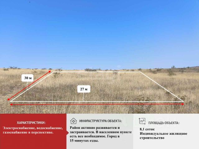 В продаже участок ровной, прямоугольной формы, видовой! Участок 8.75 соток - ИЖС, 15 минут до г Симферополь.