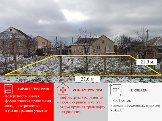 Продаётся замечательный участок! В продаже участок для индивидуального жилищного строительства (ИЖС), площадью 6 соток. Участок ровный, с правильной формой и готов к застройке. Все необходимые коммуникации уже подключены, что значительно облегчит процесс строительства. В непосредственной близости находится мечеть, а также хорошо развитая инфраструктура: в шаговой доступности расположены школа и детский сад. Участок имеет удобное месторасположение: всего 5 минут на автомобиле до города и 40 минут до моря! Отличная транспортная развязка обеспечит лёгкий доступ ко всем основным направлениям. Не упустите шанс построить дом своей мечты в этом прекрасном месте! Звоните, мы организуем показ в удобное для вас время! Номер объекта: 4238384 МЫ ГАРАНТИРУЕМ ФИНАНСОВУЮ БЕЗОПАСНОСТЬ ДЛЯ НАШИХ КЛИЕНТОВ. Полное юридическое сопровождение сделки. Высокий шанс одобрения ипотеки. Звоните, с удовольствием ответим на ваши вопросы! Код пользователя: 172148 Номер в базе: 4238384 Земельный участок на улице Дружбы в селе Левадки в сельском поселении Чистенское.
