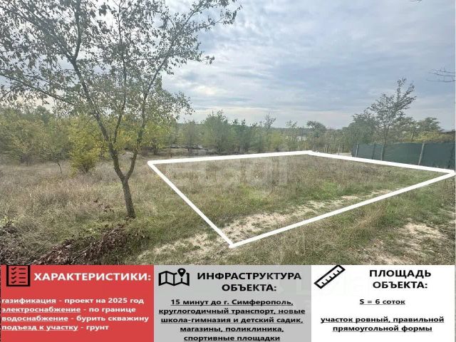 В СНТ "Родничок", Чистенского сельского поселения Симферопольского района продаётся земельный участок площадью 6 соток! Участок расположен на ул. Изобильная. Участок правильной прямоугольной формы. Возможна покупка в ипотеку! Школа, детский сад и другие объекты инфраструктуры в непосредственной близости! Железнодорожная станция в шаговой доступности. До Симферополя 15 минут езды. В пешей доступности имеется 2 озера. Можно порыбачить, отдохнуть семьёй или с друзьями. Компания Этажи - лучшее решение для покупателя! Звоните и записывайтесь на просмотр прямо сейчас! Номер объекта:8957796 МЫ ГАРАНТИРУЕМ ФИНАНСОВУЮ БЕЗОПАСНОСТЬ ДЛЯ НАШИХ КЛИЕНТОВ. Полное юридическое сопровождение сделки. Высокий шанс одобрения ипотеки. Звоните, с удовольствием ответим на ваши вопросы! Код пользователя: 112080 Номер в базе: 8957796