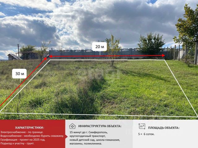 Предлагаем к продаже земельный участок в СНТ "Родничок" Чистенского сельского поселения Симферопольского района. Площадь участка 6 соток. Участок правильной прямоугольной формы, размером 20 на 30 метров! Электричество по границе. Близко расположено озеро! До остановки городской маршрутки 1.300 м! Детский сад, школа, аптека, супермаркет и другие объекты инфраструктуры в 3-х километрах от участка! Звоните и записывайтесь на просмотр! Код объекта: 9632587 МЫ ГАРАНТИРУЕМ ФИНАНСОВУЮ БЕЗОПАСНОСТЬ ДЛЯ НАШИХ КЛИЕНТОВ. Полное юридическое сопровождение сделки. Высокий шанс одобрения ипотеки. Звоните, с удовольствием ответим на ваши вопросы! Код пользователя: 70323 Номер в базе: 9632587