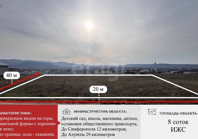 Предлагаю вашему вниманию ровный участок, площадью 10 соток, прямоугольной формы в Добром! Массив застроен на 80%, так как его расположение пользуется огромным спросом. Земля - чернозем. Отличное расположение, удобный подъезд к участку просыпан щебнем. До асфальта 300м! Коммуникации: электричество - по границе, газ - по границе. Так же на участке вырыта скважина, глубиной 52м, который оснащен насосом! Улица широкая! Размер Фасада 21м, размер боковой части 49м. Участок полностью огорожен! Вблизи находится вся необходимая инфраструктура: школа, дет сад, продуктовые магазины, авто магазины, мфц, банки, СТО, и многое другое! Помощь в оформлении и полное сопровождение сделки! Документы в полном порядке и готовы к сделке! Звоните и организую оперативный показ! Продам земельный участок в селе Доброе Симферопольского района.