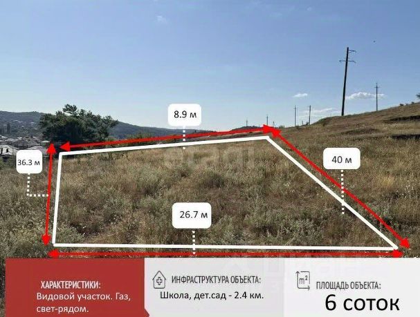 Продается видовой участок в красивом расположении! Экологически чистый район, вид на горы, свежевший воздух круглый год! До центра - 10 минут! До Алушты-Ялты - 30 минут! Участок - 10,7 соток ИЖС! Участок с небольшим уклон! Коммуникации: - свет - 3 фазы - газ - вода - можно сделать скважину 40м и будет чистейшая вода. Все коммуникации проходят по границе участка! Инфраструктура: - вся необходимая инфраструктура имеется! - школа, детский сад, магазины, пункты выдачи и прочее необходимое для комфортного проживания! Шикарнейшее, тихое и уютное место для строительства дома для себя и не менее привлекательное для капиталовложения! Полное юридическое сопровождение и развернутый отчет по земельному участку в подарок от меня! При необходимости одобрение ипотеки тоже получаете бонусом! Работаю 24/7! Звоните в любое время - организую вам быстрый показ! Продам земельный участок на улице Имени А. Бабаджаняна в селе Доброе.