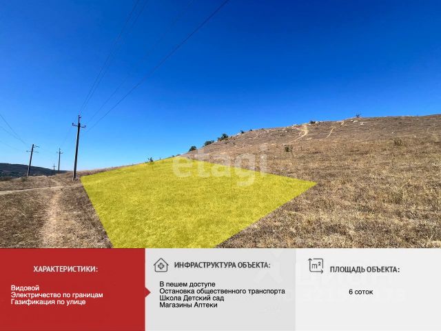 Удобное расположение: до моря всего 20 минут пешком или 7 минут на автомобиле;открывается панорамный вид на море, горы, виноградники и поселок;участок подходит для постоянного проживания или отдыха на выходные.