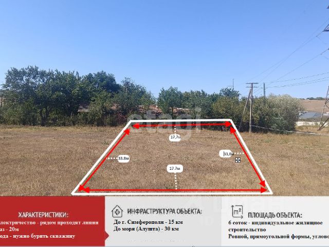 6 соток земли, ровных и готовых принять уютный дом, просторную усадьбу или перспективный инвестиционный проект. Участок четко оформлен, с единственным собственником — никаких сложностей, только чистые эмоции от создания своего пространства.