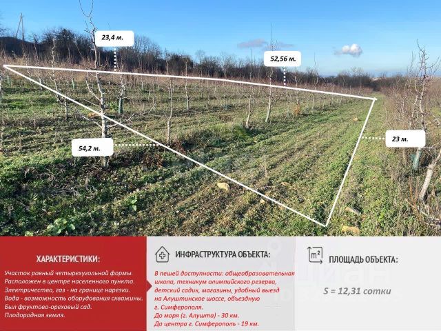 Продаётся земельный участок в Краснолесье! Большая новая нарезка в поле, можно также купить смежные участки! Участок ровный, с хорошей формой — в виде прямоугольника, 6,16 соток! Транспортная доступность: - удобная развязка во все направления Крыма; - 25 км до пляжей Алушты; - 20 км до Симферополя. Все коммуникации в населенном пункте. Инфраструктура развитая: - супермаркеты, строительные магазины, различные сервисы; - новый медпункт; - автобусные остановки; - коттеджный посёлок Малая Швейцария; - школа и детский сад - футбольное поле; - техникум олимпийского резерва. Звоните прямо сейчас в агентство недвижимости "Этажи" — мы гарантируем, что сделаем всё возможное для вашего комфортного и выгодного приобретения. Код объекта: 4874883. МЫ ГАРАНТИРУЕМ ФИНАНСОВУЮ БЕЗОПАСНОСТЬ ДЛЯ НАШИХ КЛИЕНТОВ. Полное юридическое сопровождение сделки. Высокий шанс одобрения ипотеки. Звоните, с удовольствием ответим на ваши вопросы! Код пользователя: 172148 Номер в базе: 4874883 Продам земельный участок в селе Краснолесье Симферопольского района.
