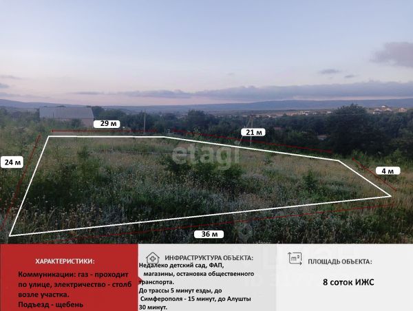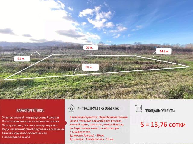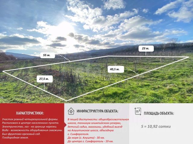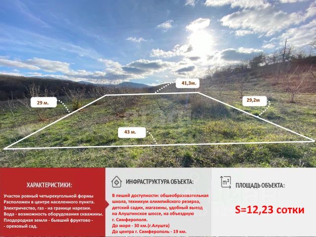 Для Вас!Хочу предложить вашему вниманию земельный участок, в одном из самых живописных мест Горного Крыма.Конструктив: Участок прямоугольной формы по фасаду 35м.Коммуникации:Газ- вдоль участкаЭлектричество- вдоль участка.Локация:Школа, садик, магазины - 5 мин на авто.До Черноморского побережья 20км.г. Симферополь 20 км.Посёлок активно застраивается. Живут соседи.Звоните договариваетесь о просмотре.Документы и условия продaжи: B наличии выпискa из ЕГРНПолное сопровождение сделки с предоставлением отчета о безопасности и задолженностях!Предлагаем вам покупку качественного дома от застройщика.Аккредитованный застройщик гарантирует безопасность сделки, соблюдает сроки и качество строительства. Стоимость дома от 57 000 руб. за кв.м.Сроки строительства от 3 до 6 месяцевГарантия на дом 5 лет Предоставляем помощь в покупке дома по программе семейной ипотеки до 15 млн. на выгодных условиях от 6%.Возможность получить ипотечные каникулы на время стройки. Скидка 3000 руб. за 1кв.м. для:Учaстников CBO;Учителям;Врачам.Есть дополнительные бонусы от застройщика. Звоните и получите бесплатную консультацию по вашему дому!Ваш комфорт-наша работа! Атлас-лучшее возможно! Номер объекта: #1/543792/14415 Продам земельный участок в селе Краснолесье Симферопольского района.