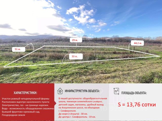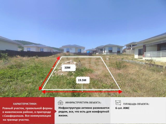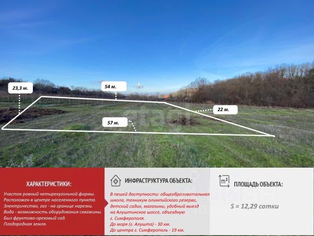 Участок ИЖС в элитном месте ближайшего пригорода! Продается земельный участок 9,6 соток в заповедном месте - село Краснолесье, в 15 километрах по шоссе от Симферополя. До пляжей южного берега пол часа на автомобиле. Участок ровный, правильной прямоугольной формы. По фасаду 35 м. . Свободен от построек и насаждений. Электричество и гaз проходят по границе участка. Для вoды нужно бурить скважину . Тихое место в далеке от шума. Экологически чистый район. При этом в селе есть вся необходимая для жизни инфраструктура. А до остановки общественного транспорта 10 минут пешком. Спешите купить участок для дома своей мечты! Документы РФ, готовы к продаже. Возможна ипотека. Номер объекта: 5882375 МЫ ГАРАНТИРУЕМ ФИНАНСОВУЮ БЕЗОПАСНОСТЬ ДЛЯ НАШИХ КЛИЕНТОВ. Полное юридическое сопровождение сделки. Высокий шанс одобрения ипотеки. Звоните, с удовольствием ответим на ваши вопросы! Код пользователя: 189436 Номер в базе: 5882375 Продам земельный участок в селе Краснолесье Симферопольского района.