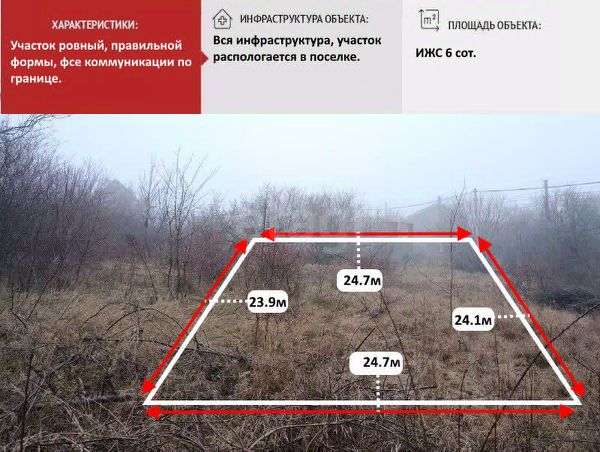 Продается уникальный участок для строительства вашего идеального дома! Предлагаем вам великолепный участок площадью 5 соток, расположенный в живописном Симферопольском районе, в дачном массиве Лозовое-3, ТСН "Минерал-2". Это место идеально подходит для ведения садоводства и создания уютного уголка для отдыха и жизни. Участок имеет все необходимые коммуникации: газопровод проходит по соседней улице, а электричество доступно вдоль границы вашего участка. Для обеспечения водоснабжения вам потребуется бурение скважины, что даст вам возможность наслаждаться чистой и свежей водой прямо на вашем участке. Одним из главных преимуществ данного участка является его расположение. Здесь вы можете не беспокоиться о подтоплениях даже в период обильных осадков, что делает его особенно привлекательным для строительства. Не упустите шанс воплотить в жизнь свои мечты о собственном доме! Этот участок — ваш идеальный старт для создания уникального пространства, где будут собираться друзья и семья, где вы сможете наслаждаться природой и спокойствием. Звоните прямо сейчас, и мы организуем для вас осмотр участка! Не откладывайте на завтра то, что может изменить вашу жизнь уже сегодня! Номер объекта: 2697905 МЫ ГАРАНТИРУЕМ ФИНАНСОВУЮ БЕЗОПАСНОСТЬ ДЛЯ НАШИХ КЛИЕНТОВ. Полное юридическое сопровождение сделки. Высокий шанс одобрения ипотеки. Звоните, с удовольствием ответим на ваши вопросы! Код пользователя: 138264 Номер в базе: 2697905