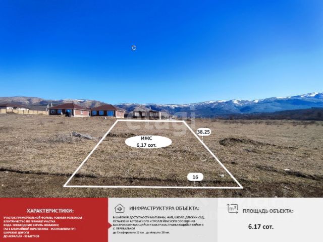 Предлагаем купить участок , 6.17 сот., ИЖС, под строительство жилого дома в селе Перевальное, Симферопольский район! Участок правильной прямоугольной формы и ровным рельефом. Фасадная часть 16 метров. До асфальтированной дороги - 90 метров. Электричество по границе. Для воды необходимо бурить скважину. Инфраструктура района хорошо развита, школа, детский сад в центральном Перевальном (30 минут пешком). Остановки общественного транспорта - автобусное и троллейбусное сообщение круглогодично, магазины, ФАП, кафе, пункты WB и Ozon. До центра г Симферополь всего 15 мин., до Алушты - 20 минут на автомобиле. Участок с видовыми характеристиками, находится в экологически чистом районе, в 200 метрах протекает речка Кизилкобинка, рядом лес, горы, чистый воздух. Есть все необходимое для жизни. Документы РФ. Возможна покупка в ипотеку. Работаем со всеми банками представленными в Крыму! Предлагаем строительство дома на участке от аккредитованного застройщика. Звоните, подберем участок на любой вкус и бюджет Оперативный показ в удобное для Вас время!!! Не упустите свой шанс! Звоните уже сейчас! Номер объекта: 5738496 МЫ ГАРАНТИРУЕМ ФИНАНСОВУЮ БЕЗОПАСНОСТЬ ДЛЯ НАШИХ КЛИЕНТОВ. Полное юридическое сопровождение сделки. Высокий шанс одобрения ипотеки. Звоните, с удовольствием ответим на ваши вопросы! Код пользователя: 109678 Номер в базе: 5738496