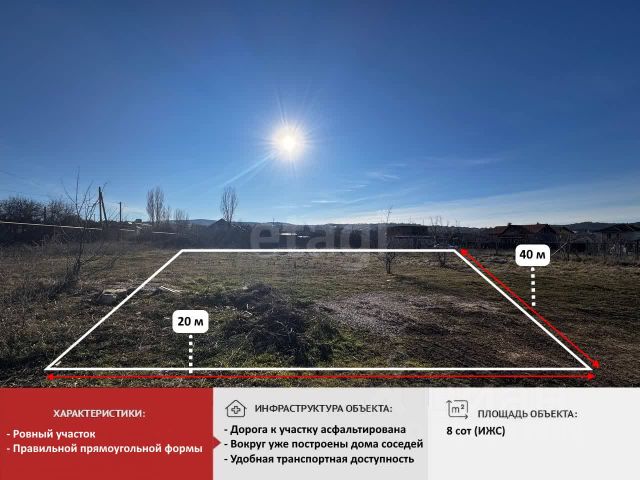 Продается уникальный земельный участок для индивидуального жилищного строительства! Площадь 9.2 соток, ровный и правильной прямоугольной формы, идеально подходит для реализации ваших строительных планов. Участок расположен в живописном селе Пионерское, всего в 8 км от Симферополя, что делает его отличным вариантом для комфортного проживания вдали от городской суеты. Дорога к участку асфальтирована, что обеспечивает легкий и удобный доступ. Участок полностью чистый, без каких-либо построек или насаждений, что дает вам полную свободу для воплощения своих идей. Вокруг уже построены дома соседей, что создаёт атмосферу дружелюбного жилого массива. В непосредственной близости находятся строительные базы и магазины, что делает жизнь здесь еще более комфортной. Удобная транспортная доступность: остановка общественного транспорта всего в нескольких минутах ходьбы. Этот участок расположен в экологически чистом районе, окруженном лесами, горами и рекой Салгир, что гарантирует чистый воздух и возможность наслаждаться природой. Здесь есть всё необходимое для комфортной жизни и отдыха. Звоните прямо сейчас, чтобы узнать больше и записаться на просмотр! Код объекта: 4412284 МЫ ГАРАНТИРУЕМ ФИНАНСОВУЮ БЕЗОПАСНОСТЬ ДЛЯ НАШИХ КЛИЕНТОВ. Полное юридическое сопровождение сделки. Высокий шанс одобрения ипотеки. Звоните, с удовольствием ответим на ваши вопросы! Код пользователя: 160388 Номер в базе: 4412284 Купить земельный участок на улице Бай Асана в селе Пионерское в сельском поселении Добровское.