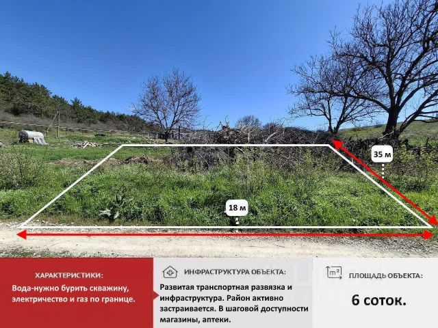 Участок, ИЖС, в экологическом районе,с.Пионерское! Предлагаем приобрести земельный участок, 6 соток. Правильной формы, ровный. Коммуникации: вода-нужно бурить скважину, электричество и газ по границе. Развитая транспортная развязка и инфраструктура. Район активно застраивается. В шаговой доступности магазины, аптеки. До Симферополя 5 км., до моря на авто 30 минут. Звоните нам прямо сейчас, и мы организуем показ участка в удобное для вас время. Не упустите уникальный шанс стать обладателем этого участка мечты! Номер объекта:7723042 МЫ ГАРАНТИРУЕМ ФИНАНСОВУЮ БЕЗОПАСНОСТЬ ДЛЯ НАШИХ КЛИЕНТОВ. Полное юридическое сопровождение сделки. Высокий шанс одобрения ипотеки. Звоните, с удовольствием ответим на ваши вопросы! Код пользователя: 126636 Номер в базе: 7723042