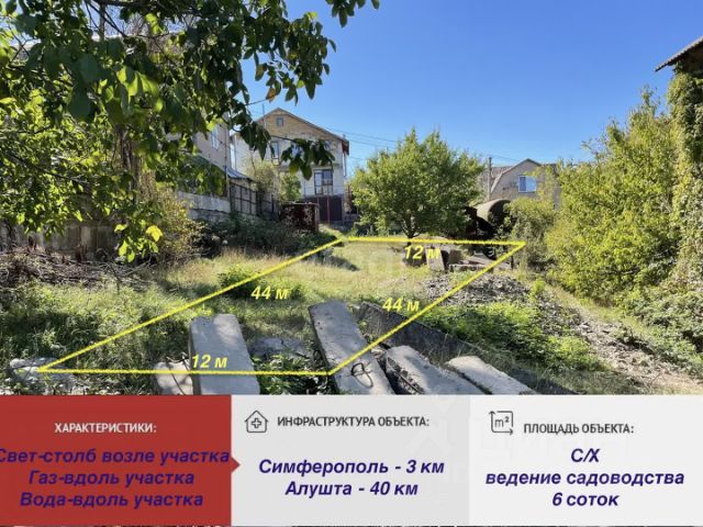 Внимание! Уникальное предложение, которое вы не можете пропустить! Представляем вашему вниманию, участок мечты, площадью 6,2 сотки, расположенный в живописном месте недалеко от Симферополя, Добровский с/с, снт Селена. Асфальтированная дорога почти до самого участка — забудьте о пыли и ухабах! Коммуникации по границе участка. Остановка общественного транспорта в пяти минутах — легко добираться в город! Не упустите шанс инвестировать в свое счастливое будущее и создать место, о котором вы всегда мечтали. Это предложение — настоящий подарок судьбы, и оно не будет доступно вечно! Звоните прямо сейчас, и мы с радостью организую для вас персональный просмотр участка в удобное время. Мы готовы ответить на все ваши вопросы и помочь вам сделать правильный выбор. Номер объекта: 2768229 МЫ ГАРАНТИРУЕМ ФИНАНСОВУЮ БЕЗОПАСНОСТЬ ДЛЯ НАШИХ КЛИЕНТОВ. Полное юридическое сопровождение сделки. Высокий шанс одобрения ипотеки. Звоните, с удовольствием ответим на ваши вопросы! Код пользователя: 180224 Номер в базе: 2768229