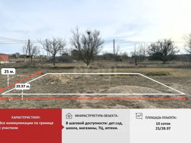 Инфраструктура развита: в радиусе 2 км расположены магазины, школа, детский сад, поликлиника и пункт выдачи Ozon. Для любителей отдыха на природе в шаговой доступности два озера, где можно рыбачить или просто наслаждаться тишиной. Участок находится в центре Крыма, что обеспечивает быстрый доступ к основным курортным направлениям благодаря новой скоростной трассе "Таврида". До центра Симферополя — 22 км (около 25 минут на машине), до Алушты можно добраться за час, до Евпатории — за 1 час 10 минут, до Севастополя — за 1,5 часа.