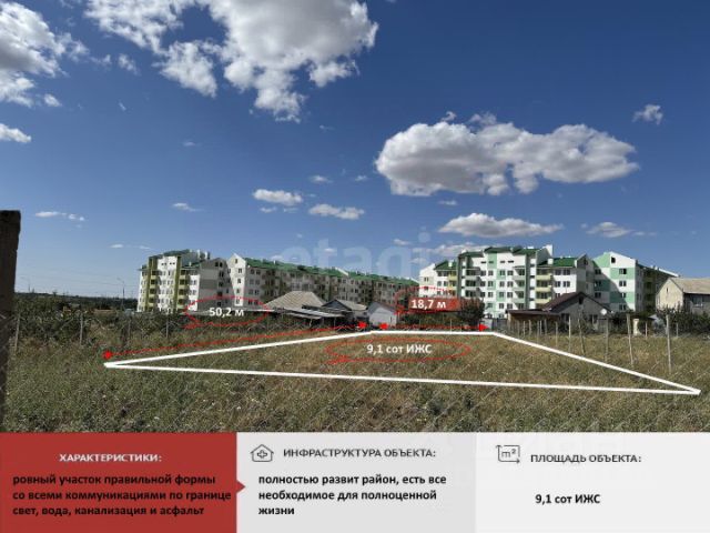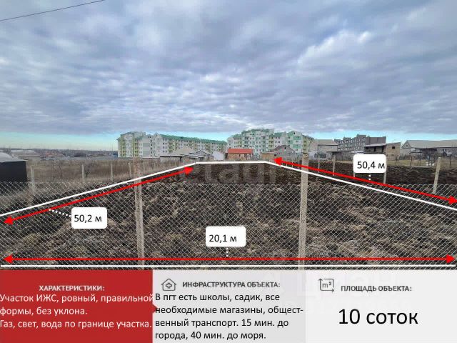 Продам участок ИЖС! Участок 10 соток правильной прямоугольной формы, расположен в пгт Гвардейское. Все коммуникации центральные: - электричество -ТУ получены , столб на участке -водоснабжение централизованное -газ на участок заведён Канализация септик. С трёх сторон огорожен забором - ракушка в полкамня, остаётся установить забор с фасадной части участка. Подъездные пути хороши отсыпаны щебнем, до асфальтированной дороги 50 метров. Инфраструктура района активно развивается в результате соседства строящего ЖК Республика. В ближайшее время планируется строительство школы, торгового центра.На сегодняшний день в пешей доступности находится новый детский садик , магазины,аптеки, остановка общественного транспорта. Документы РФ, один собственник. Номер объекта:10801434. МЫ ГАРАНТИРУЕМ ФИНАНСОВУЮ БЕЗОПАСНОСТЬ ДЛЯ НАШИХ КЛИЕНТОВ. Полное юридическое сопровождение сделки. Высокий шанс одобрения ипотеки. Звоните, с удовольствием ответим на ваши вопросы! Код пользователя: 114094 Номер в базе: 10801434 Купить земельный участок в поселке городского типа Гвардейское Симферопольского района.