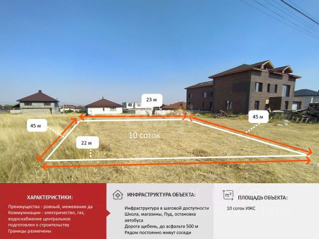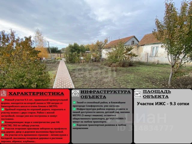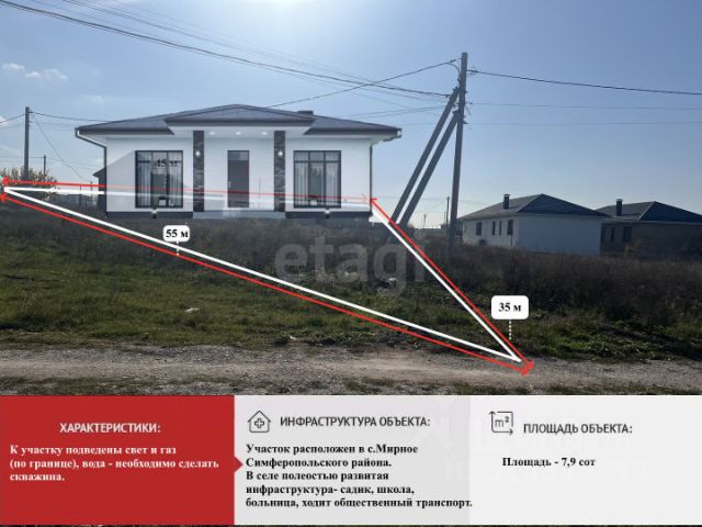 Арт. 90504058. Продам участок в с.Мирное Симферопольского района. Участок 8 соток ИЖС в очень классном месте, участок ровный прямоугольной формы, по границе участка проходят все коммуникации (свет, вода, газ), остается только сделать септик или согласовать с двумя соседями технические условия и сделать врезку в центральную канализацию в 60 м от участка. Участок имеет очень удобное месторасположение, 3-й участок от края главной дороги по ул.Белова. В 200 метрах остановка общественного транспорта, хорошая транспортная развязка, из с.Мирное можно выехать на Евпаторийское шоссе к ТРК "Меганом" или на объездную дорогу. Рядом есть сад, школа, магазины, все подъезды к вашему будущему участку асфальтированные!!! Район заселен и максимально развит. Со всех трех сторон есть заборы, живут соседи, вам останется сделать красивый забор на фасаде! Это идеальное место для строительства жилого дома, в котором будет проживать большая семья. Преимущества: - большой участок правильной формы, без уклонов и перепадов, асфальтная дорога - уже сформированный и развитый район с ИЖС, тут вам на перспективу не вырастут новостройки как грибы, будете жить обособленно и камерно - безопасно и понятно для ваших детей, остановка общественного транспорта рядом, школы и сады тоже рядом - максимальные удобства с наличием всех коммуникаций - цена ниже рынка Пишите/звоните Записывайтесь на просмотр, не упустите классный участок!!! Земельный участок в селе Мирное Симферопольского района.