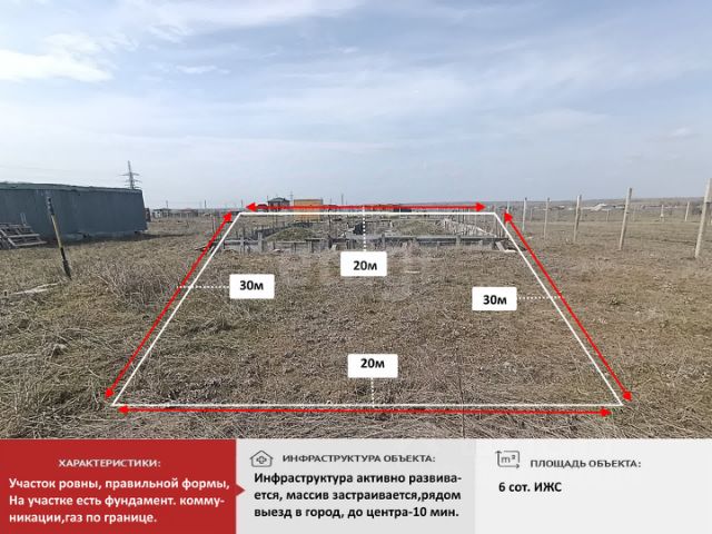 6 соток земли, ровных и готовых принять уютный дом, просторную усадьбу или перспективный инвестиционный проект. Участок четко оформлен, с единственным собственником — никаких сложностей, только чистые эмоции от создания своего пространства.