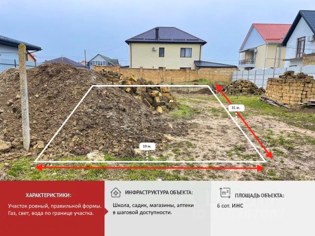Объект 23575. Если не дозвонились пиши в сообщения, я Вам перезвоню Участок мечты в с. Мирное, Симферопольский район — заезжай и строй! Продаётся земельный участок 6 соток в одном из самых востребованных и комфортных районов рядом с Симферополем — село Мирное. Главное преимущество — уже залит фундамент шведская плита, рассчитанный под двухэтажный дом. Это экономия времени, денег и нервов — вы сразу переходите к строительству дома своей мечты! Локация, в которую влюбляются: • Рядом лес и река — чистый воздух и тишина • Школа и детский сад в шаговой доступности • Магазины рядом • Остановка общественного транспорта • До центра Симферополя — всего 15 минут Коммуникации: • Газ подведён • Электричество подключено • Асфальтированная дорога — удобный подъезд в любое время года Идеально подойдёт: • для постоянного проживания • для семьи с детьми • как инвестиция в перспективном районе Мирное — один из самых ликвидных населённых пунктов Симферопольского района. Участки с готовым фундаментом здесь — большая редкость! Звоните прямо сейчас — такие предложения долго не задерживаются. Покажу участок в удобное для вас время и отвечу на все вопросы. Компания ИЛИОН профессионально подберет недвижимость любого типа, исходя из Ваших пожеланий и бюджета, предлагая лучшие условия рынка Земельный участок на улице Речная в селе Мирное.
