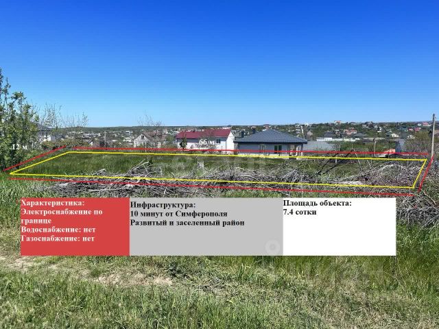 Участок ровный и имеет удобное расположение, близость к остановке общественного транспорта, удобная транспортная развязка по всем направлениям, вся инфраструктура, новый детский сад, центр олимпийской подготовки, бассейн, магазины. Расстояние до г. Симферополя, 5 км.