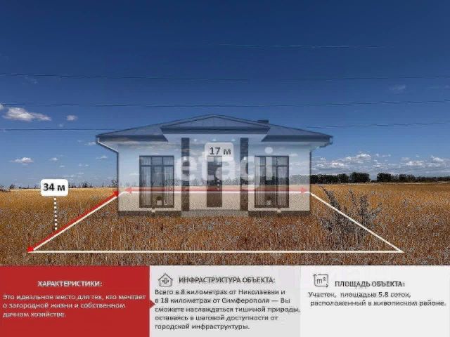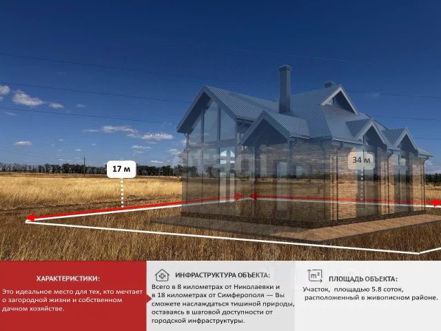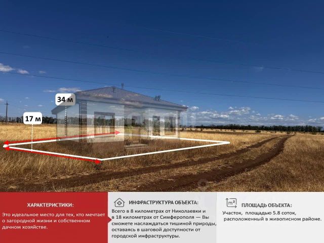 Продается участок в 9 соток - ИЖС. Находиться в с.Винницкое, удобный подъезд с дороги, вдоль участка идет свет, с легкостью можно провести 3 фазы к участку.Вода - в планах провести, так же как газ, у соседней улицы уже все готово, поэтому ждать осталось недолго. Участок ровный, без склонов и подъемов, тихое спокойное место, в 10 минутах езды находиться пгт.Николаевка с песчаными пляжами, и прекрасным морем, до развязки трассы таврида - 25 минут, Симферополь 30 минут, Севастополь 50 минут. В Симферопольском районе активно растут цены на недвижимость и Винницкое не исключение, цена объективная и полностью соответствует реалиям рынка, звоните, пишите в любое время отвечаем 24/7.
