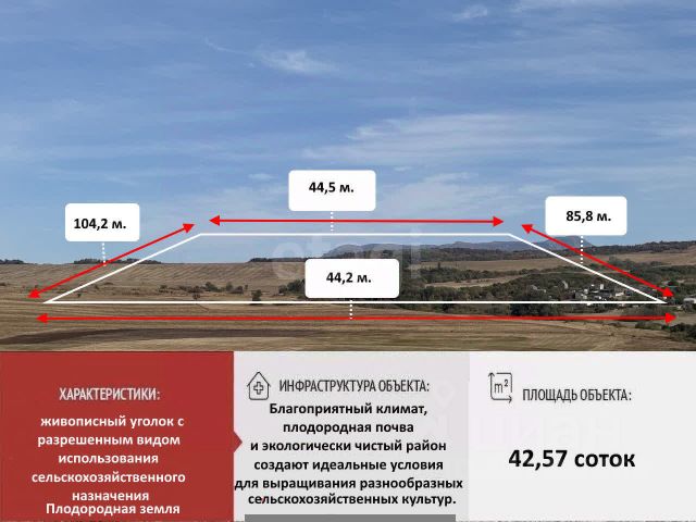 Сельскохозяйственный участок мечты — только у нас! Плодородная земля без перепадов и камней — ваш шанс начать успешное хозяйство! Адрес: Перовское сельское поселение. Почему стоит выбрать именно этот участок? - Ровная, ухоженная земля — никаких склонов и камней. - Плодородная почва, идеально подходящая для любых сельскохозяйственных культур. - Возможность осмотра в любое удобное для вас время. Лучшее предложение на рынке — спешите, цена вас приятно удивит! Компания "Этажи" — ваш надёжный партнёр: - Полное юридическое сопровождение сделки. - Гарантия прозрачности и безопасности на каждом этапе. Звоните прямо сейчас и станьте владельцем участка, который принесёт вам богатый урожай и стабильный доход! Номер объекта: 12226564 МЫ ГАРАНТИРУЕМ ФИНАНСОВУЮ БЕЗОПАСНОСТЬ ДЛЯ НАШИХ КЛИЕНТОВ. Полное юридическое сопровождение сделки. Высокий шанс одобрения ипотеки. Звоните, с удовольствием ответим на ваши вопросы! Код пользователя: 198905 Номер в базе: 12226564 Купить земельный участок в селе Перово Симферопольского района.