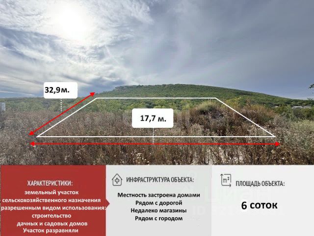 Создайте свой уголок рая в живописной Константиновке! Предлагается к продаже земельный участок 8 соток сельскохозяйственного назначения с разрешенным видом использования: строительство дачных и садовых домов. Расположенный в тихом и уютном селе Константиновка Перовского сельского поселения Симферопольского района, этот участок идеальное место для воплощения Вашей мечты о загородной жизни! Здесь Вы сможете построить дом своей мечты, окруженный садом, виноградником или разместить огород. Наслаждайтесь тишиной, чистым воздухом и красотой Крымской природы, не отказываясь от комфорта городской жизни. Участок идеально подходит под строительство дачи для летнего отдыха или для постоянного проживания вдали от городской суеты. Звоните прямо сейчас, чтобы узнать больше и начать строить свое будущее! Номер объекта: 9817338 МЫ ГАРАНТИРУЕМ ФИНАНСОВУЮ БЕЗОПАСНОСТЬ ДЛЯ НАШИХ КЛИЕНТОВ. Полное юридическое сопровождение сделки. Высокий шанс одобрения ипотеки. Звоните, с удовольствием ответим на ваши вопросы! Код пользователя: 185552 Номер в базе: 9817338