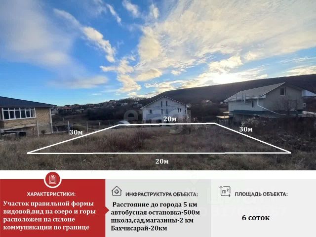 Арт. 114049708 Видовой земельный участок в СНТ "Надежда"! Симферопольский район, Перовский с/с. Общая площадь 7,3 сотки Категория земель: земли сельскохозяйственного назначения Вид разрешенного использования: ведение садоводства Кадастровый номер: 90:12:132301:681 Выполнено межевание! Коммуникации: столб с электричеством рядом возле участка, газ по забору, воду нужно бить скважину. Участок в расположен в очень красивом месте, рядом соседи построились и уже проживают! Район очень перспективный, СНТ расстраивается, успейте приобрести участок в пригороде Симферополя по хорошей цене ! Документы РФ