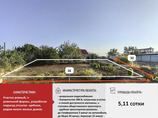 Эксклюзивный участок в 5 минутах от Симферополя ваш путь к комфортной жизни и отдыху! Предлагается к продаже уникальный земельный участок, расположенный всего в 5 минутах езды от центра Симферополя. Идеальное местоположение сочетает в себе быстрый доступ к городской инфраструктуре и возможность наслаждаться природой. Ключевые преимущества: Удобная дорожная развязка: Легкий и быстрый доступ в любую точку города и за его пределы. Без пробок и лишних затрат времени. Все необходимые коммуникации: Участок полностью обеспечен всеми центральными коммуникациями, что значительно упрощает строительство и дальнейшее проживание. Близость к морю: Всего 15 минут, и вы уже на живописном побережье! Идеально для тех, кто мечтает о доме у моря или хочет быстро добираться до пляжа в выходные. Это идеальный вариант для строительства частного дома, дачи или инвестиций. Не упустите свой шанс стать владельцем этого привлекательного участка! Свяжитесь с нами для получения дополнительной информации и организации просмотра. Арт. 131125191