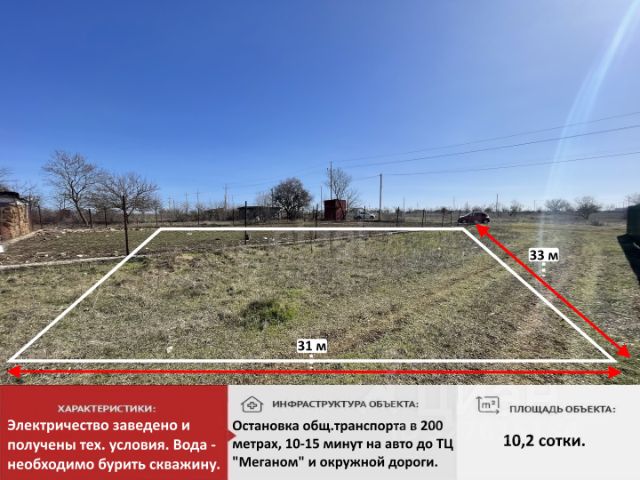 Арт. 126599591 Земельный участок возле Новозбурьевки! Симферопольский р-н, с.п. Перовское, тер. спк СИЭУ-Надежда, ул 49. Земельный участок площадью 5 соток. Назначение: СНТ Категория земель: земли сельскохозяйственного назначения. Вид разрешенного использования: ведение садоводства. Выполнено межевание! Подъездные пути грунтовые (вблизи центральная улица) Застроенный жилой массив. Кадастровый номер: 90:12:131801:1299 Коммуникации: электричество, вода, интернет по улице. газ (газификация СНТ планируется 2026-2027 гг) интернет по улице Участок идеально подходит для строительства загородного дома или дачи, обеспечивает красивый вид и свежий воздух. Отличное место для спокойного отдыха и жизни вдали от городской суеты. До Симферополя 10 минут на машине, до моря 20 минут. В нескольких минутах езды находится прекрасный пруд для рыбалки и отдыха "Золотой Ключ". Право собственности РФ. Один собственник.