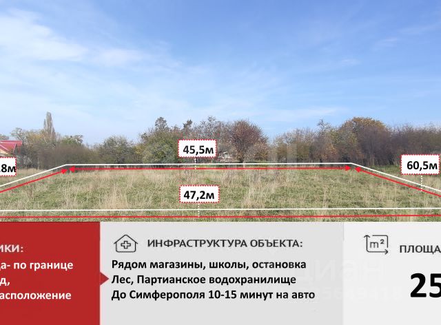 Республика Крым, Симферопольский район,с. Партизанское . земельный участок площадью 6,3 соток , что дает вам возможность построить свой идеальный дом!Соседи рядом проживают на постоянной основе Электричество возможно подключить, что обеспечит комфортное проживание и сделает вашу жизнь более удобной. А для водоснабжения есть возможность пробурить скважину, 35-40 метров.что гарантирует наличие чистой воды в любое время года. Это идеальное место для создания уюта и спокойствия вдали от городской суеты. Расположение участка неподалеку от леса где природа буквально дышит свежестью чистым воздухом и красотой. Инфраструктура района обладает необходимыми магазинами, школами и детскими садами ,ФАП а пунктами выдачи товаров,что необходимо для для комфортной жизни! УДАЛЕННОСТЬ от хорошей асфальтированной дороги 500 м, до участка хорошая дорога с щебнем и хорошо накатанная грунтовая дорога. До остановки 20 минут пешком. Общественный транспорт ходит регулярно. Удобные подъездные пути. ИНФРАСТРУКТУРА: в поселке есть - школа (11 классов), новый детский сад, клуб, амбулатория, аптека и магазины. В пешей доступности Партизанское водохранилище. Место для тех, кто мечтает о жизни в тишине и красивой природе! Не упустите шанс стать обладателем замечательного участка и воплотить в жизнь свои мечты и идеи в окружении природы !