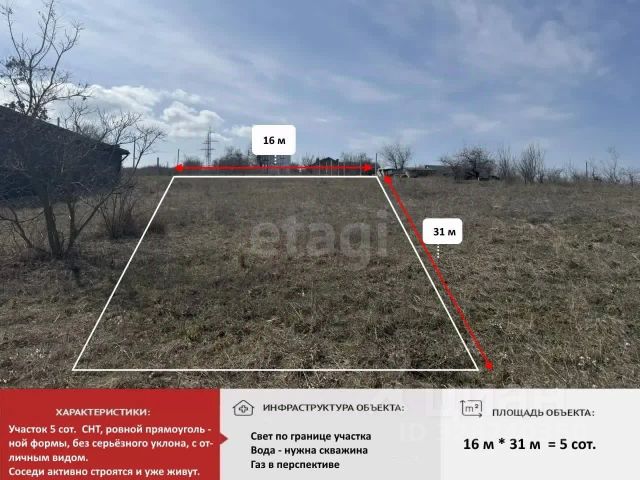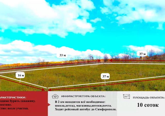 Участок под строительство жилого дома в 15 минутах езды от Симферополя! Продаётся земельный участок 10 соток, правильной формы, видовой, расположен в живописном месте, в районе с. Теплое. До Ялтинской трассы и с. Андрусово расстояние 3 км по грунтовой дороге , 20 минут ходьбы и вы на трассе Симферополь - Ялта . В двух километрах, в Клиновке есть красивое Грушевое озеро. В Константиновке находится вся инфраструктура школа, детский сад, магазины, почта, ходит рейсовый автобус в г. Симферополь . Для строительства загородного дома место просто идеальное, 15 минут езды на машине и Вы в Симферополе. Это место где можно отдохнуть от городской суеты и шума . Категория земель: Земли сельскохозяйственного назначения, ведение садоводства с возможностью строительства жилого дома, даже по льготной ипотеке. Участок ровный, проведено межевание. Ваша мечта может осуществиться вместе с покупкой этого участка! Компания "Этажи"-лучшее решение для покупателей! Номер объекта 3946443. МЫ ГАРАНТИРУЕМ ФИНАНСОВУЮ БЕЗОПАСНОСТЬ ДЛЯ НАШИХ КЛИЕНТОВ. Полное юридическое сопровождение сделки. Высокий шанс одобрения ипотеки. Звоните, с удовольствием ответим на ваши вопросы! Код пользователя: 89071 Номер в базе: 3946443